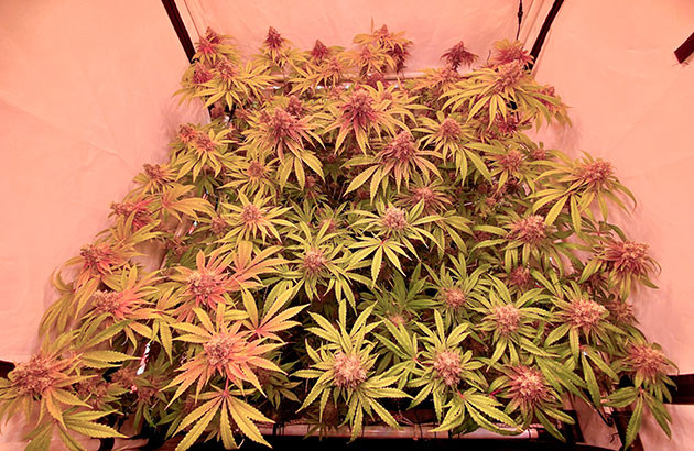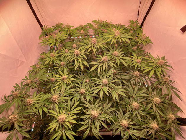 Растишки достигли своего пика в 110 сантиметров. Пришло время для последней дефолиации и увеличения дозировки питательных веществ для поддержания правильного развития шишек.