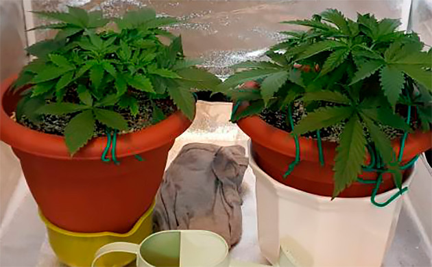 В начале четвертой недели я приступил к тренировкам. Между топпингом и фиммингом я выбрал второй вариант. Помимо этого, я подогнул растихи по методу LST. Оба кустика выглядели крепкими и здоровыми, так что хорошо справились с тренировками. Сразу после этих манипуляций с растениями я заменил лампы. До этого стояла LED 300 W (реальная мощность 130 W) на LED 1800 W (реальная мощность 595 W), а световой режим изменил на 20/4. Также я начал давать немного больше удобрений и добавил в раствор Cal-Mag: