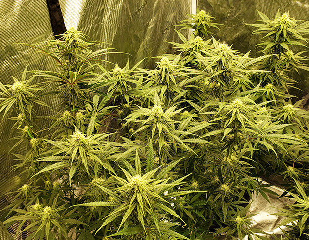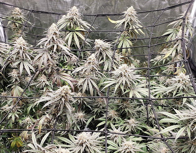 В начале 11-й недели натянул сетку ScrOG. Соцветия еще не слишком большие, но уже начали постепенно срастаться на колах и на ощупь достаточно плотные. Высота кустиков по макушкам 116 сантиметров.