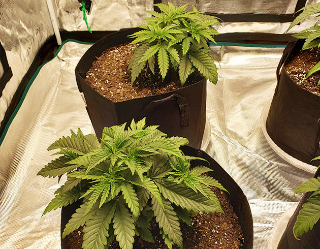 Растения немного пострадали от теплового/светового стресса. В это время в наших краях поднялась температура, отчего им стало жарковато. Поливаю в прежнем темпе по той же схеме. Никаких признаков дефицита или переизбытка, паразитов или болезней, девочки развиваются отлично. Стресс особо не замедлил их рост, возможно, потому что был быстро устранен. Я поставил в бокс вентилятор для обдува и немного поднял лампы.