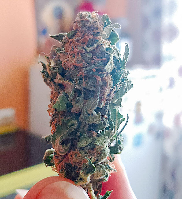 Куст беспроблемный. Даже запах цветочно-цитрусовый из бокса не раздражает, а приносит удовольствие. Обеспечиваю полив 2 раза в день. Последнюю неделю начал падать аппетит. Изменил компот, добавив вместо Big Bud стимулятор Overdrive, и убрал из рациона B-52. Пока всё идёт по плану. Куст становится липким, трихомы пока все прозрачные. Несмотря на то, что генетика преимущественно сативная, шишки получаются не рыхлые, а твердые. Мне нравится.