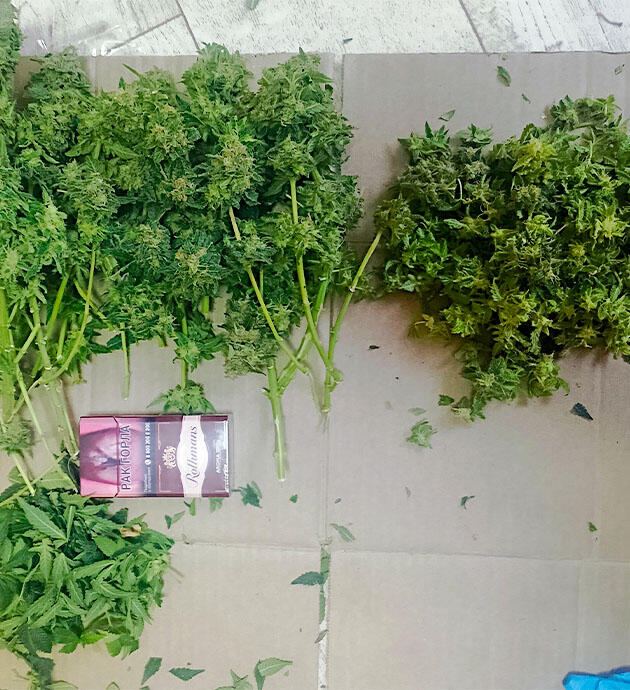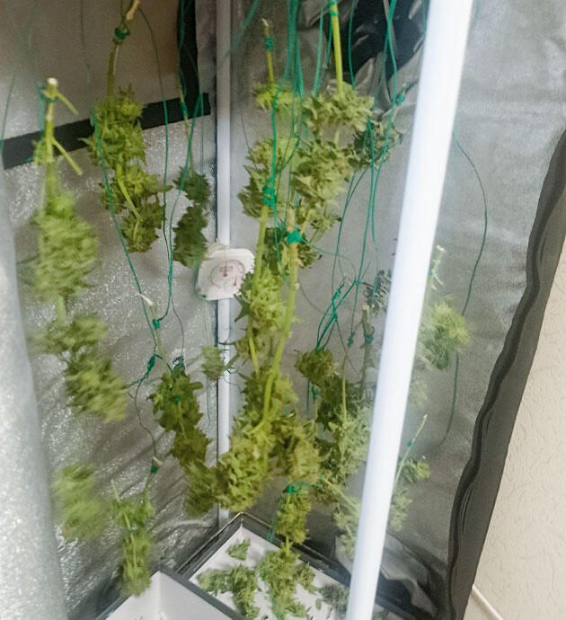 Перед сбором урожая 2 дня проливал куст водой 60 ppm с добавлением Flawless Finish от Advanced Nutrients по 2 мл/л. Лил утром и вечером по 3 литра воды. Запах при рубке просто жестокий. Пришлось быстро резать, тримминговать и вешать сушиться в бокс.