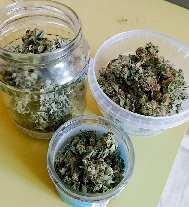 Общий сухой вес шишек получился 98 грамм, что, по моему мнению, неплохо для сативного фотика, который вырос меньше чем за сто дней в маленьком боксе.