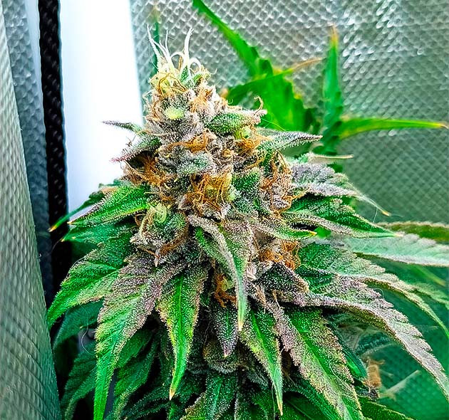 Девочки выглядят отлично, а соцветия с каждым днем наливаются весом и увеличиваются в объеме. Один куст, похоже, созревает быстрее остальных, но подождем, когда он действительно созреет, чтобы убедиться в правильности предположения. Запах становится всё насыщеннее: кислинка, цитрусы и что-то ещё интересное. Появился легкий фиолетовый оттенок. Неяркий, но вполне отчетливый. Очень доволен этим гровом и ходом цветения. До харвеста еще недели три-четыре, жду не дождусь момента, когда все это великолепие можно будет продегустировать!