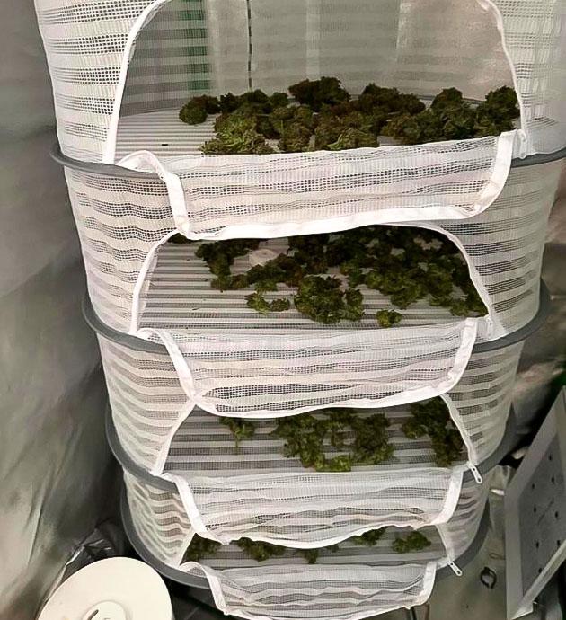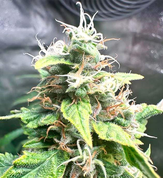 Выждав еще пять дней, я приступил к сбору урожая. К этому моменту верхушечные бутоны были наполовину заполнены янтарными трихомами, а на нижних ярусах янтарь только начал появляться.