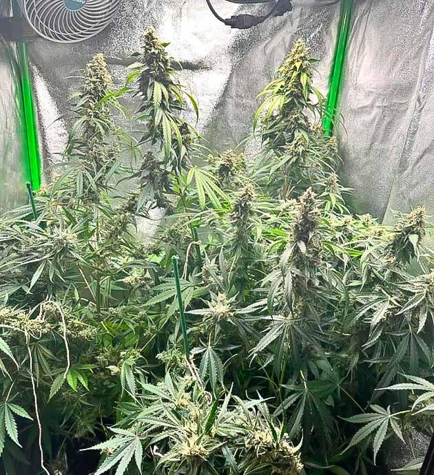 Это был мой первый опыт выращивания, и я прекрасно понимаю, что допустил много ошибок. Первая и самая серьезная – слишком маленькая палатка для таких растений. Возможно, если бы у меня были навыки тренировки для контроля роста или самих растений бы я высадил не три, а хотя бы пару, было бы нормально. Но из-за своей неопытности я заставил кусты изнывать от жары в самый ответственный период вегетативного роста. Тем не менее, после переезда в более высокий и просторный бокс, похоже растения, оправились от полученного стресса, начали стремительно развиваться и даже принести мне неимоверные 236 г сухих бутонов плюс 77 г обрезков для каннабаттера.