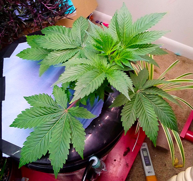 Возможно, мне попался неудачный фенотип, но растишка довольно медлительная. У меня появилась небольшая корневая гниль, но я быстро с ней разобрался. Может, причина медленного роста заключается в ней. Во всяком случае надеюсь, что на следующей неделе рост пойдет быстрее. Еще я избавился от нескольких нижних листьев. Также я еще раз увеличил дозировку удобрений: