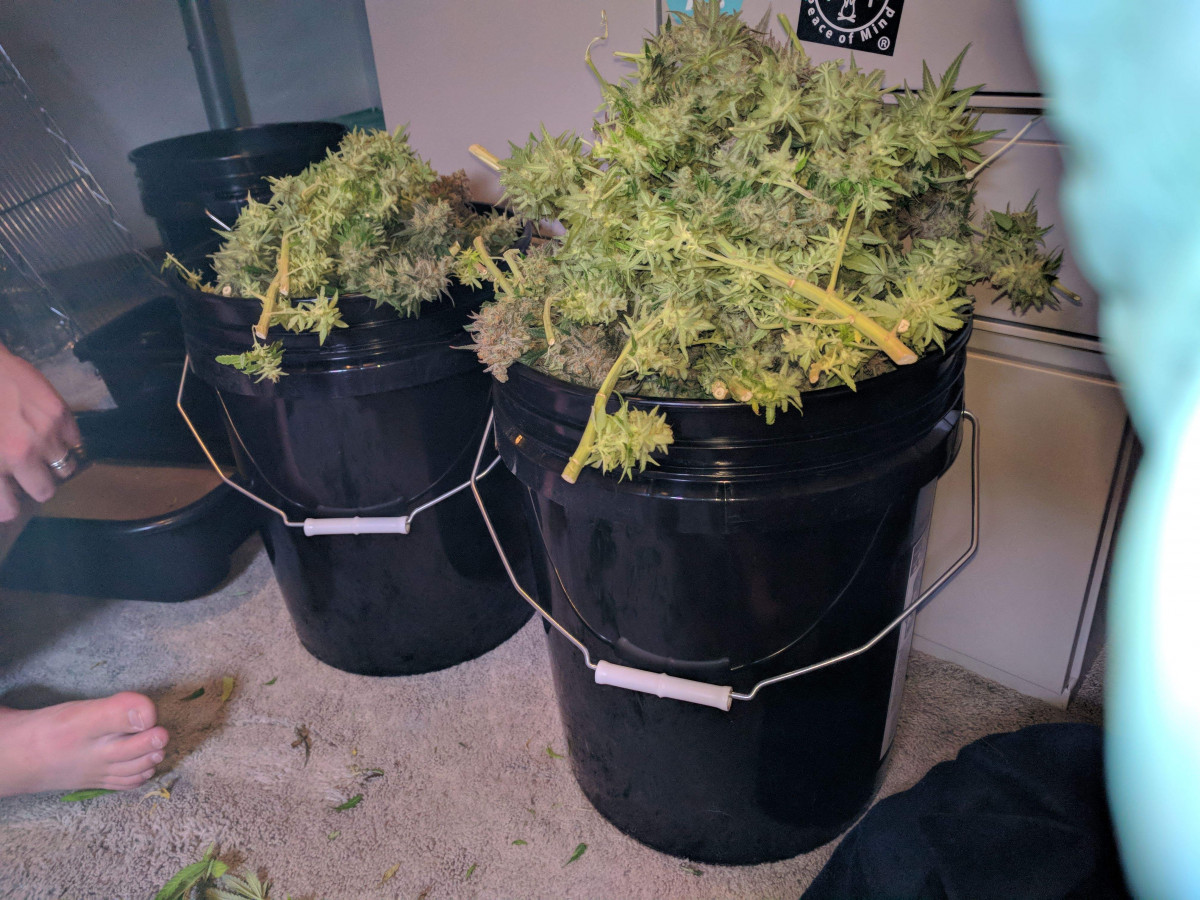 Последние недели грова я не вел еженедельный журнал и записи в целом. Да и записывать особо было нечего, я просто проверял состояние шишек, поливал и кормил кусты по мере необходимости. Периодически убирал отмершие листья. С середины 18-й недели начал промывать кусты и перестал вносить удобрения. К концу грова листья на верхних этажах растений стали темно-зеленого и фиолетово-оранжевого цвета. После очередной проверки трихом, когда количество янтаря составляло примерно половину, я выключил свет на 72 часа, после чего срубил свои «Супер Лимоны».