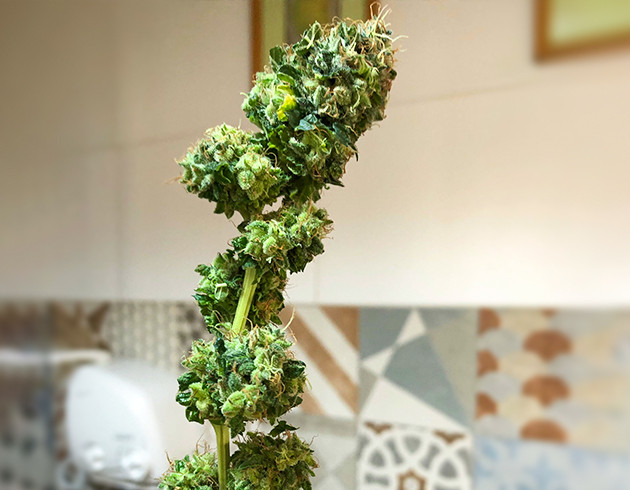 Я остался доволен White Widow от “Семяныча”, но был разочарован самим собой. Уверен, если бы я предпринял меры, когда только обнаружил признаки вируса табачной мозаики, куст бы получился еще лучше. Также подозреваю, что я немного переборщил с добавками, и к вирусу добавился переизбыток азота. С другой стороны, так я убедился, что у “Белой Вдовы” очень крепкий иммунитет, и, даже несмотря на такие проблемы, она выросла в роскошный куст. Внешний вид растения получился очень специфическим за счет пожелтевшей скрученной листвы, оранжевых и белых стигм, большого количества трихом. Соцветия выросли достаточно большими, хотя набралось и немало “попкорна”. Сушка заняла 10 дней для самых больших кол, от 5 до 7 дней для веток с соцветиями поменьше. Итоговый результат – 90 грамм сухих соцветий. Вес мокрого урожая составлял 470 грамм.