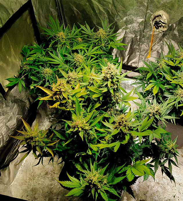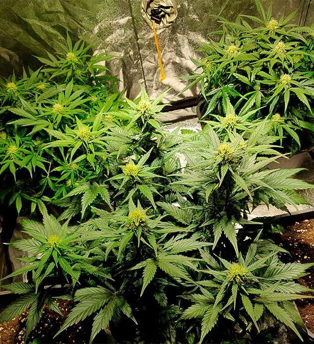 Что касается условий грова. Палатка 100 х 100 х 180 см стоит в нежилом помещении. Для освещения использую китайский борд на 280 ватт, бренд ноунейм. В планах приобрести какую-нибудь крутую лампу, но пока обхожусь этой, пока не разберусь в теме более глубоко. Горшки по 11 литров, универсальный грунт + немного перлита, на дне 2 сантиметра пенопласта для дренажа. Удобрения – GHE Dual Part + стимулятор для корней Ata Rootbastic.
