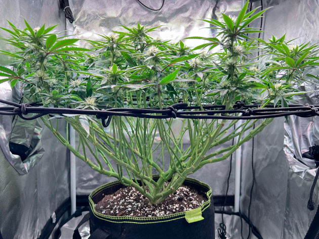 Эти три недели проходили стабильно. На четвертой я воспользовался LST-подгибом. На 31-й день я начал замечать, что один из кустов оказался недоразвитым. Скорее всего, я подверг его излишнему стрессу, сделав что-то не так. Было принято решение продолжать выращивать лишь одну оставшуюся растишку.