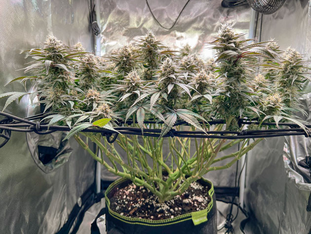 Разместил ScrOG-сетку и начал готовиться к цветению, на которое я переведу куст на следующей неделе. Пока растишка разрослась до приличных размеров, сформировав огромное количество листвы.