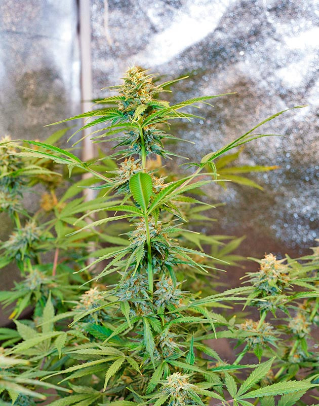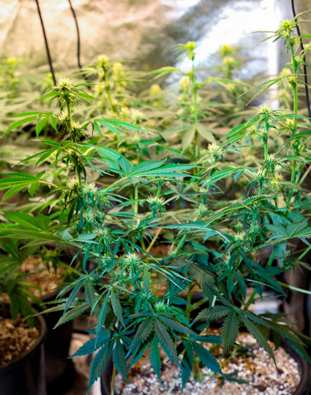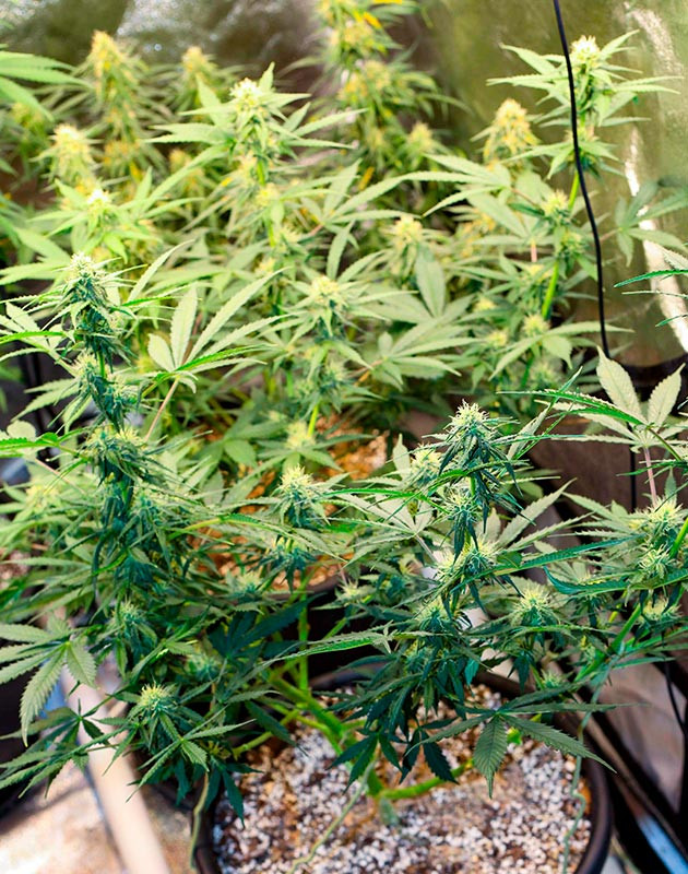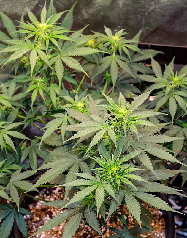 Осуществился переход на стадию цветения. Растишки начинают активно увеличиваться в размерах и даже источать легкий травянистый аромат. Я же подсуетился и пересадил их в горшки на 8 литров, чтобы кустикам было комфортнее.