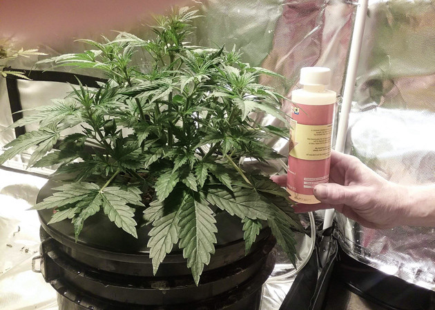 Марихуана все такая же прожорливая, выпивает почти по 4 литра в день. Питание скорректировал с акцентом на стимуляцию цветения. Увеличил pH Perfect Bloom до 3,0 мл/л, а остальные компоненты по 0,7 мл/л.