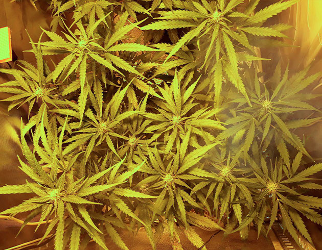 На девятой неделе растишки снова получили компот, как и на прошлой, только 6 литров и с добавлением Canna PK. PPM на входе 550, на выходе 505. Следующий полив чистой водой снова показал завышенный ppm на дренаже, почти 800. Не пойму, почему так происходит, хоть я и даю 50 % от рекомендованной дозы удобрений. Впрочем, к концу недели кусты выглядели хорошо. Если не обращать внимания на цифры, то развитие нормальное. Немного желтых листьев компенсируется отличными соцветиями, в которых уже появились первые мутные трихомы.