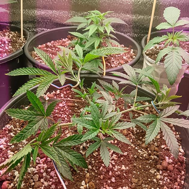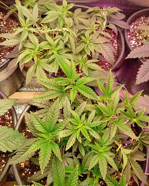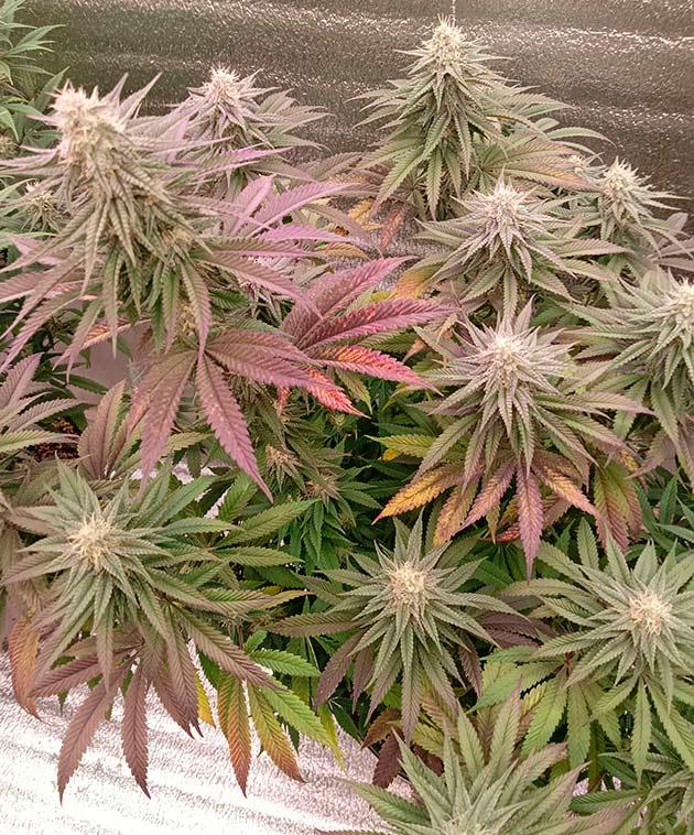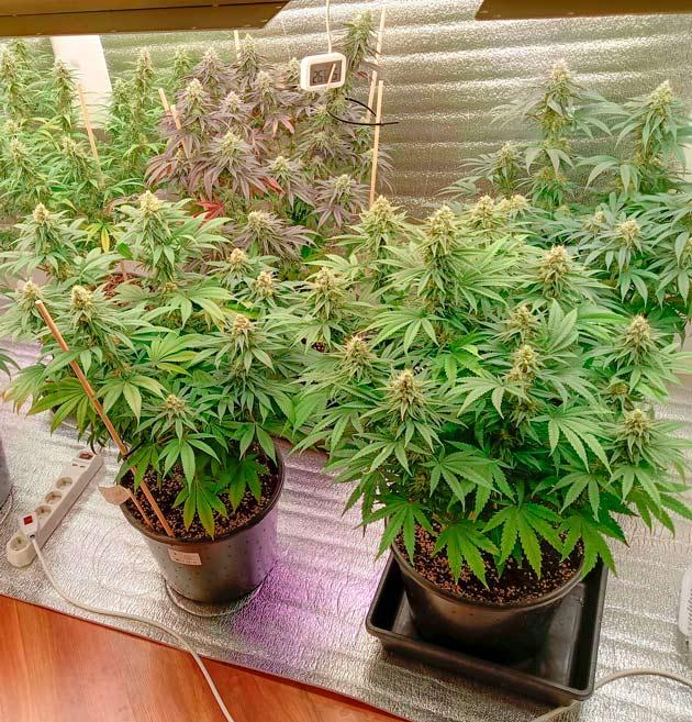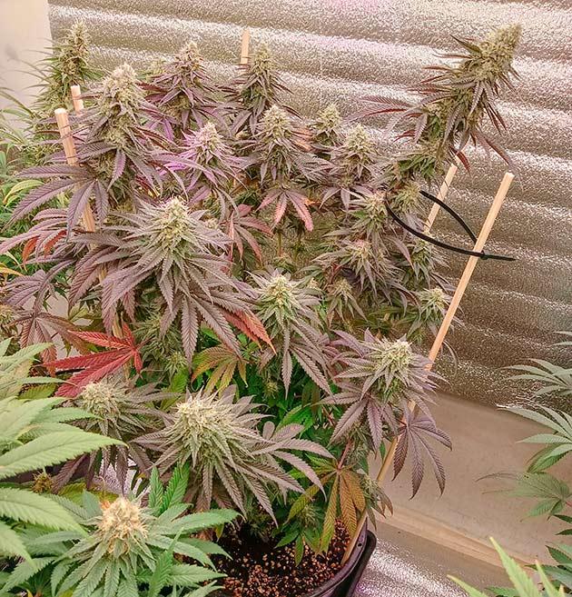 Все путем. Девочки растут и набирают массу. Шишки прут только в путь! Единственная проблема - как бы до харва дотерпеть. Фиолетовый куст просто великолепен. Жаль он единственный дал такой фенотип.