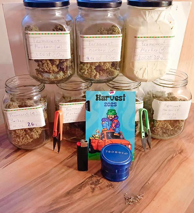 Ну и с каждого еще до этого по паре нормальных таких бошек на пробу пущено было. Почему-то фото с харвеста зеленого Перманента не осталось, хотя я точно делал.
