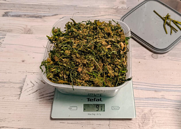 Бошки хорошие получились даже при том, что ещё лучше пару недель было подержать. Я впервые поднял нормальный куст, до этого не больше 40 грамм с одного получалось. Думаю, не зря высчитывал состав удобрений. Раньше просто использовал удобрения Rastea, а перед этим кустом, вообще, решил посчитать точно, как я его кормлю, и выявил недостаток многих микроэлементов. В общем, докупил «Буйских удобрений» сухих, добавил к недорогой Rastea и получилось, что удобрений на куст потратил примерно на 3 тысячи, что очень дёшево, в сравнении с тем, что я вижу в других репортах с дорогими импортными удобрениями.