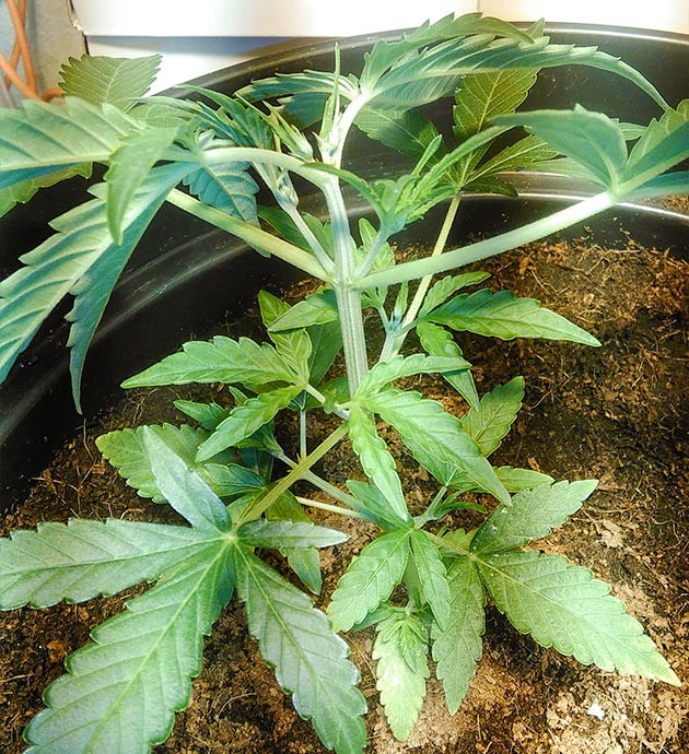 На четвертой неделе рост саженца составлял около 15 сантиметров. Пока он развивается не очень быстро, пол пока не показал, как и признаки предцвета. Поливаю почти каждый день, схема та же – «вода – вода – компот». С четвертой недели начал давать раствор покрепче, добавил CalMag и Silicon по 0,5 мл/л, а Plant Start убрал.