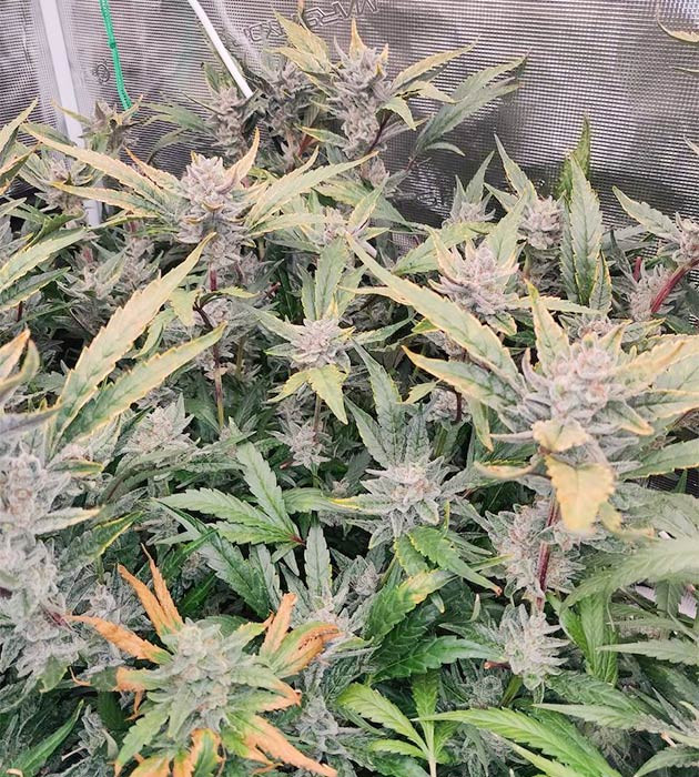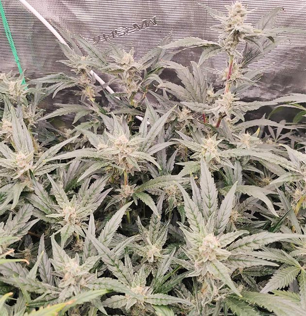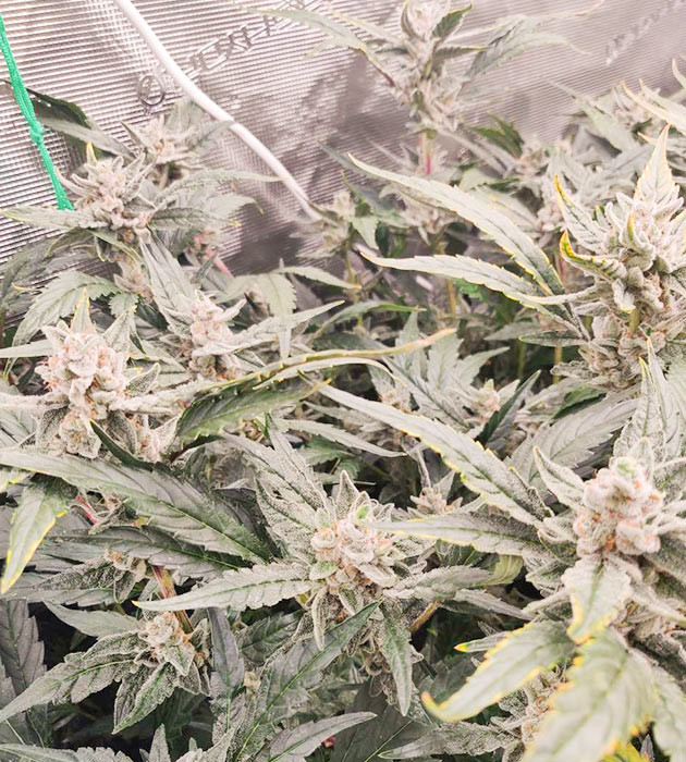 Соцветия у Strawberry Gorilla Auto удивительные: генетика «Гориллы» дает о себе знать. Они явно самые смолистые и липкие в гроубоксе. Соцветия и сахарная листва обильно покрыты слоем трихом.