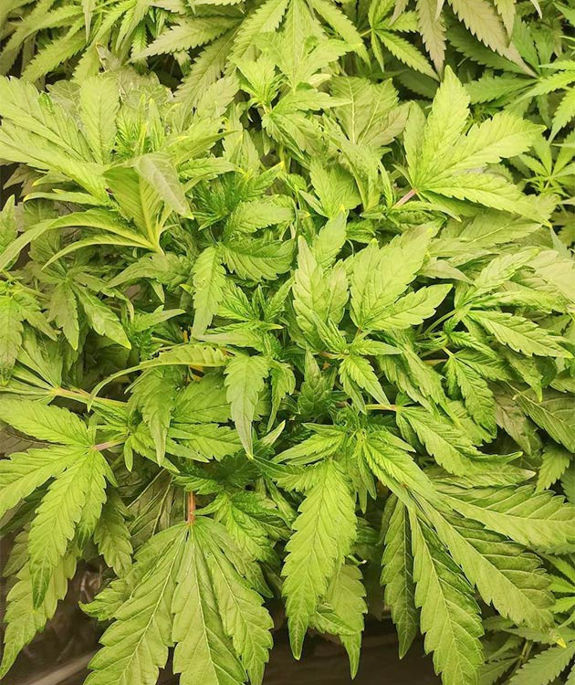 После топпинга растение притормозило в росте и снова отстало от своих соседей. Другие кустики были обрезаны на 5 дней раньше, поэтому к моменту топпинга Strawberry Gorilla уже успели восстановиться и сейчас выглядели значительно больше за счет сформированных макушек. В остальном все в порядке, восстановление от обрезки идет стабильно. Отмечу густую и плотную листву немного странной формы, которая заметно отличается от листвы других растений. На общем фото «Горилла» сзади слева. Условия и состав компота остаются прежними.