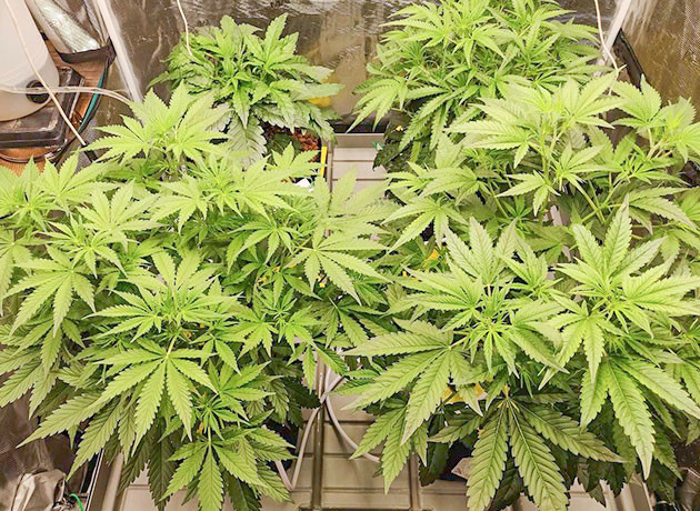На 11-й неделе я поднял количество раствора, которое получает кустик в сутки, до трех литров. Это связано с повышением температуры в гроубоксе: днем пиковые показатели достигают 30 ℃, ночью – 27 ℃. Также немного подкорректировал состав раствора, оставив ppm 1000: