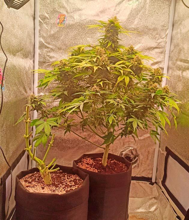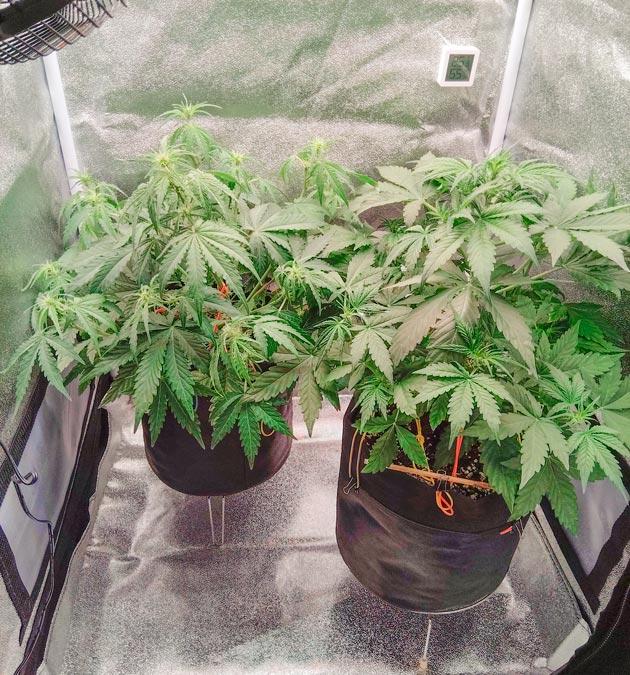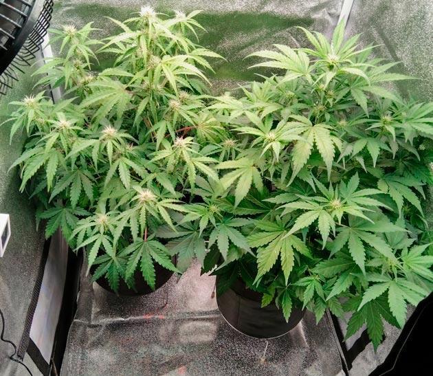 Также сделал обеим малыхам LST. Постарался разогнуть ветки в две стороны, чтобы максимально эффективно использовать свою ограниченную площадь бокса 60 х 60 и максимум кол получали достаточно света. В итоге они все равно лезут друг на друга в месте стыка, но освещены почти все равномерно.
