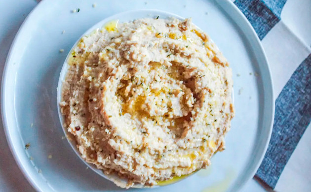 Слегка остывший нут необходимо избавить от оболочки (она может испортить текстуру готового блюда, сделав его не таким нежным и однородным), добавить лимонный сок, чеснок (измельченный), соль, тахини, оливковое масло и немного воды. Все перетирается в блендере, а вода добавляется по мере необходимости для регулирования консистенции.