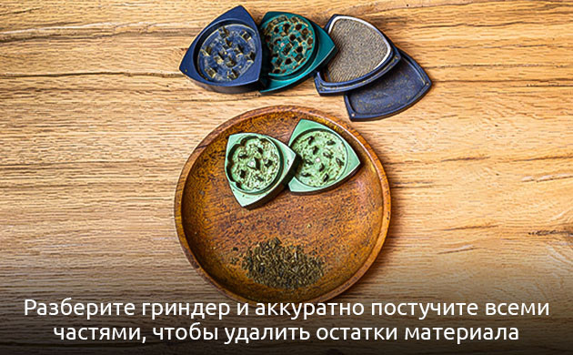 не используйте едкую химию вроде отбеливателя или других чистящих средств, содержащих хлор. Подобные вещества могут впитываться в поверхность гриндера и позже придадут неприятный запах при использовании.