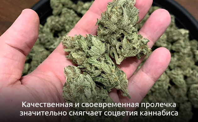 - Лучший вкусоароматический букет. Пролечка усиливает уникальный запах марихуаны, который немного ослабевает после сушки. Полностью вкусоароматика, заданная терпеновым профилем, раскрывается только после пролечки.