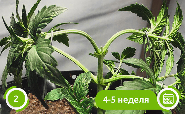 Время начала тренировок конопли во многом зависит от обстоятельств. Если ваша плантация абсолютно здорова, нет признаков дефицита или профицита нутриентов, а на кустах уже сформировалось не менее четырех междоузлий, то можно смело приступать к тренировкам. Растение должно иметь достаточно сил, чтобы оправиться от полученного стресса, а значит, должна быть набрана минимальная лиственная и корневая масса. Наступает этот момент обычно на 3-4 неделе с момента прорастания.