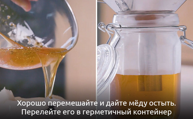 - Дайте мёду остыть и перелейте его в герметичный контейнер для хранения.