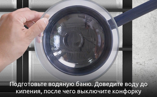 - Подготовьте водяную баню. Для этого в одну ёмкость налейте два стакана воды, а вторую поставьте сверху;