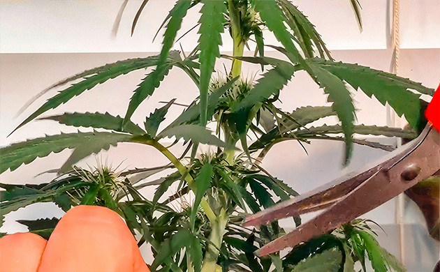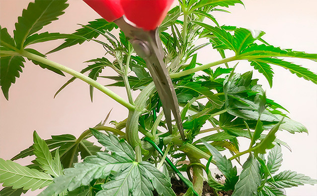 Что касается ухода, то, кроме тренировок и прочих манипуляций, кустик нуждается в щедрой порции питательных веществ. Не забывайте своевременно поливать растения и подкармливать удобрениями в соответствии со стадией развития. А еще не будет лишним периодически подрезать и корневую систему, которая способна буквально за несколько месяцев заполнить небольшую емкость. Любые виды обрезки нужно делать стерильным инструментом, чтобы избежать инфицирования среза и сохранить крепкое здоровье каннабиса.