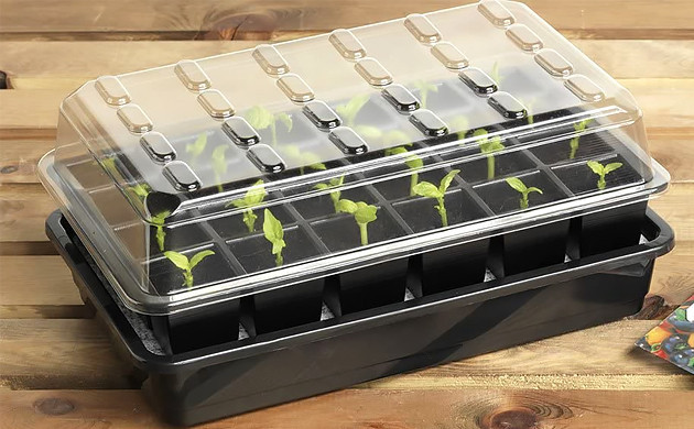 Идеальными считаются парниковые условия, при которых влажность достигает 75-85 %, а движение воздуха сводится к минимуму. Для этого можно воспользоваться специальными пропагаторами или мини-парниками. Если вы высадили росток в горшок, то его можно накрыть пленкой с отверстиями для вентиляции или поместить над побегом пластиковый стаканчик с аналогичными вентиляционными отверстиями.