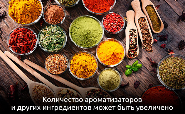 - Из-за характерного и достаточно специфического вкуса конопляной муки количество ароматизаторов и других ингредиентов, влияющих на вкус готового продукта, может быть увеличено.