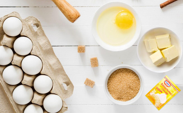 Растапливаем сливочное масло, после чего тщательно смешиваем его в подходящей посуде с сахаром. Когда смесь станет воздушной, в нее добавляем яйцо и ванилин, после чего еще раз тщательно перемешиваем.