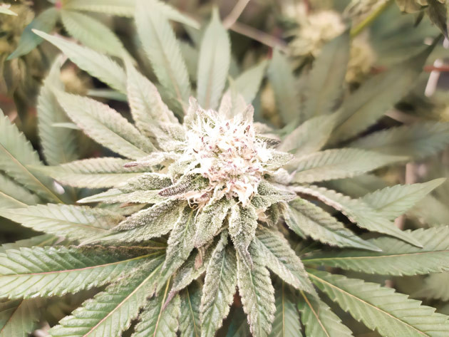 Растиха продолжала тянуться, достигла 50 сантиметров. Ветки очень крепкие, продолжают расти. До лампы осталось всего 35 сантиметров, надеюсь, я не получу ожоги на макушках. Шишки начали расти активней. В целом куст демонстрирует очень бодрое развитие, предцвет прошёл буквально за неделю. На макухах начал появляться «сахар», также в палатке приятно пахнет сладким парфюмом, немного цветочным с фруктовым оттенком. Куст выглядит отлично, 12 макушек радуют меня и обещают дать солидный урожай при таком темпе развития.