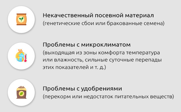 • некачественный посевной материал (генетические сбои или бракованные семена);
