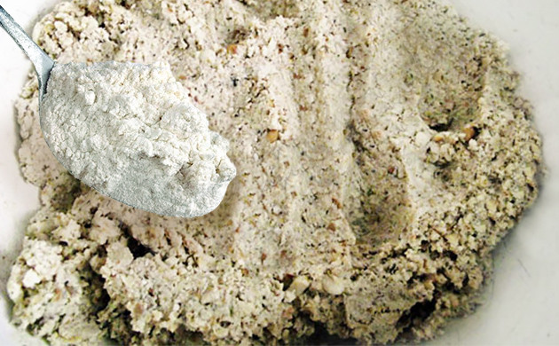 Тофу протирается через сито и смешивается с конопляным семенем, овсянкой и специями.
