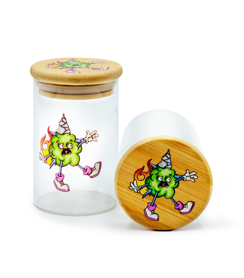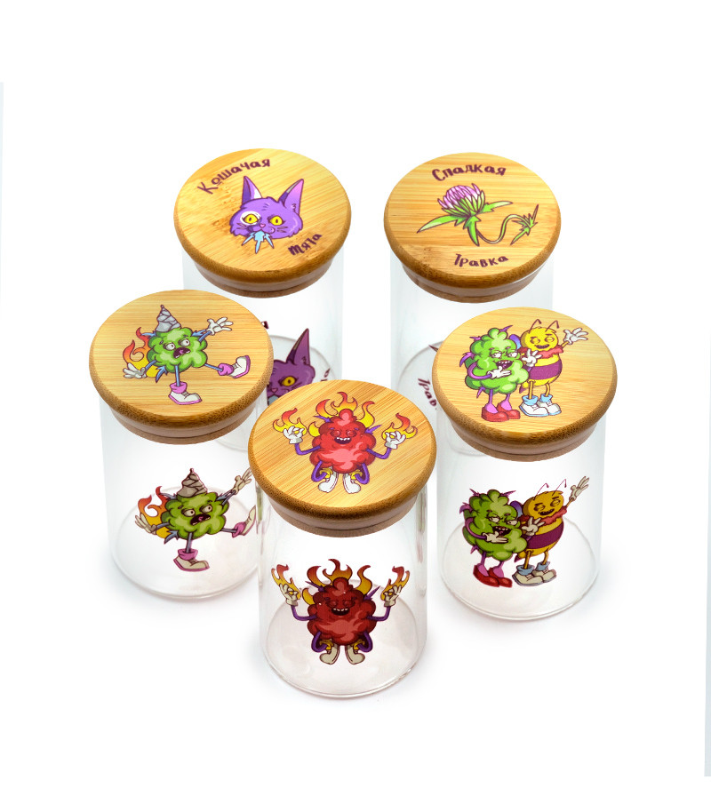 Работа гровера не завершается на этапе сбора урожая. После того, как шишки срезаны, отманикюрены и высушены, их нужно хранить в подходящей таре. Забудьте о дедовском методе «завернуть в газету»! Баночка герметичная с принтом 7CH большая изготовлена из стекла, а крышка – из бамбука. Ёмкость герметична, не пропускает запах, а внутрь не попадает воздух, что очень важно для долгосрочного хранения растительного материала конопли. На баночку нанесен фирменный принт в стиле «Семяныча». Её размер – 6,5х10,8 см. В такой ёмкости урожай будет не просто лежать в целости и сохранности, но еще и выглядеть очень стильно.