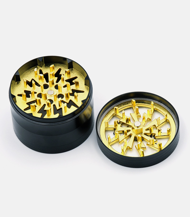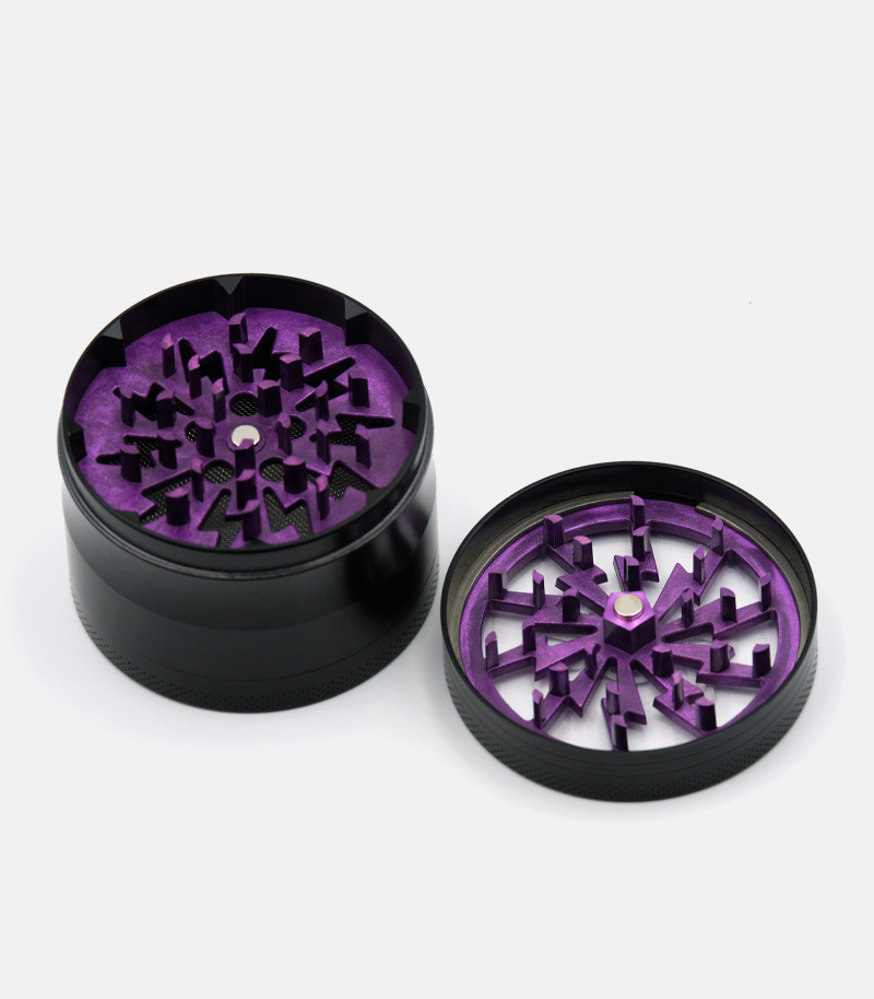 Измельчение сушеных материалов еще никогда не было таким простым. Гриндер из цинкового сплава – это надежный девайс, который прослужит гроверу долго. Он состоит из трех камер. Отличительная особенность изделия заключается в прозрачной верхней крышке. За счет этого можно наблюдать за процессом измельчения. Ножи ромбовидные и очень острые, что позволяет накрошить сушеные травы за несколько движений. Крышка крепится к отсеку с лезвиями при помощи магнита. Таким образом, даже если гриндер перевернуть, он не раскроется. Следующие две камеры предназначены для хранения измельченного продукта. Одна большая и достаточно вместительная, она имеет диаметр 63 мм. Нижняя камера используется для сбора пыльцы. Для этого отсек оснащен металлической сеточкой, через которую просеивается самая мелкая фракция. У гриндера оригинальный дизайн во многом благодаря прозрачной верхней крышке. Доступен для заказа в разных цветах.