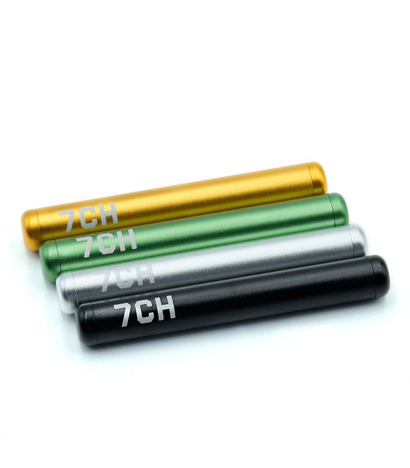 Фирменный кейс для самокрутки 7CH представлен в четырех цветах: золотой, серебряный, зеленый, черный. Он изготовлен из авиационного алюминия, благодаря чему очень лёгкий, но прочный и долговечный, не окисляется с течением времени. Его длина – 11,5 сантиметров, так что в него влезет очень смачный джойнт. Герметичная конструкция джойнт-холдера не даёт запаху каннабиса пробиваться наружу, что очень кстати, если вы решили скрутить папиросу и прогуляться с ней. На кейс нанесены фирменная айдентика 7CH. Изделие приятно лежит в руке и в целом выглядит очень стильно. Кейс для самокрутки 7CH станет хорошим выбором в качестве подарка для гровера и отлично впишется в коллекцию мерча от «Семяныча».