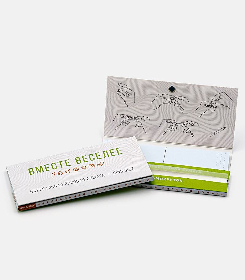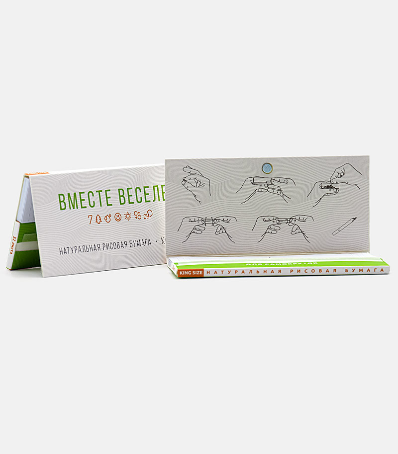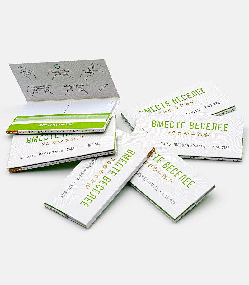 Любая самокрутка начинается с бумаги, а хорошая самокрутка начинается с качественной бумаги. Папиросная бумага King Size с принтом «Семяныч» отвечает всем современным критериям качества и экологичности. Она изготовлена из натуральной рисовой бумаги и обладает отличными структурными качествами, позволяющими папиросе тлеть равномерно. Клейкая полоса выполнена из сухого сока акации. Она надежно скрепляет самокрутку и значительно облегчает процесс скручивания.