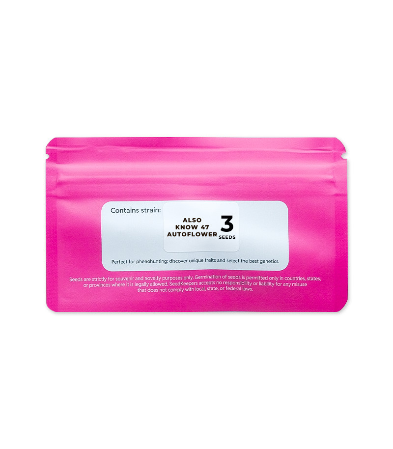 Бридеры компании Seedkeepers создали сорт Also Know 47 Autoflower путем слияния традиций и инноваций. Они взяли представителя культовой олдскульной линейки AK-47 и скрестили его с отборным каннабисом Ruderalis. Кросс представил собой квинтэссенцию удобного и результативного гровинга, а именно легкого выращивания, стабильной урожайности и сбалансированного воздействия автоцвета, которое опьяняет, веселит и в то же время дарит приятные расслабляющие вибрации по всему телу. Все прелести классического АК, но в компактной, скороспелой и неприхотливой форме.