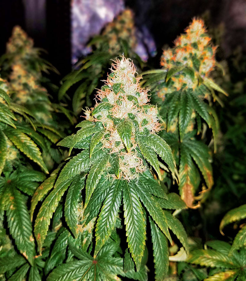 Astral — не тот сорт, что можно уместить в маленьком тенте и оставить без внимания. Это мощное, стремительно развивающееся растение, которому нужно пространство. В закрытом грунте высота куста может достигать 2,1 м, а в аутдоре — и все 2,5 м. Крона раскидистая, с выраженным центральным стеблем и множеством боковых побегов. Важно обеспечить обилие света, хорошую циркуляцию воздуха и побольше места для корней — тогда куст покажет себя во всей красе. При ограниченной высоте помещения рекомендуются техники контроля роста — ScrOG, LST или суперкроппинг.