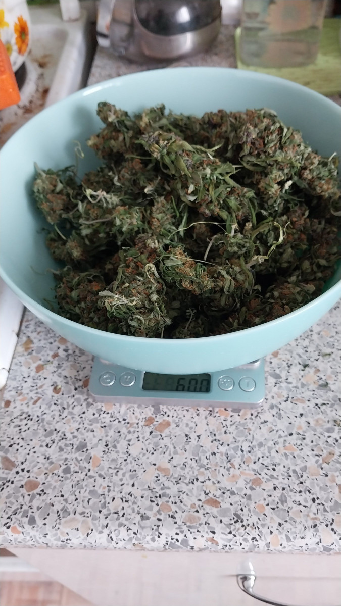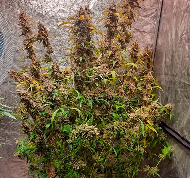 В общей сложности, от семки до харвеста прошло 12 недель, да и раньше надо было, а то уже было очекнь много янтаря. До дня Х растение было без полива 4 дня, и куст за это время подсох и просто облился смолой. Я его еще дефолировал, чтоб потом триммить меньше было.