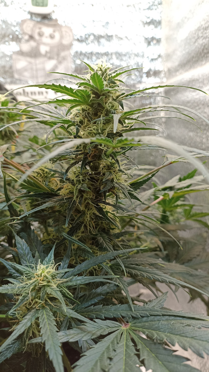 - Общие впечатленияБонусная семка, которая способна поменять представление об автоцветах. Отличный сорт! быстро прорастает, быстро развивается, особенно со второй недели веги. Случился казус с температурным режимом из-за сильно раскочегаренных батарей. Я хоть их и закрывал одеялами, но в комнате было 26, а в боксе и вовсе 32. Боялся, чтобы Джонни не стрессанул. Но он мощный и стойкий как скала. Структура у куста была плотной с короткими междоузлиями, так что было принято решение начать легкий LST, чтобы куст лучше аэрировался. На пятой недели началось полноценное цветение, а на седьмой уже сформировались бутончики.