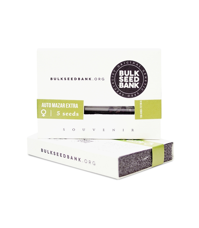 Сорт конопли Auto Mazar Extra является одним из самых высоких и продуктивных автоцветущих разновидностей Bulk Seed Bank. Гибрид на 100% стабилен и феминизирован, а по своей действенной силе, вкусу и аромату напоминает оригинальный сорт. Чтобы добиться таких показателей, селекционерам пришлось вывести два поколения переходных разновидностей, последняя из которых была скрещена со специально отобранным рудералисом.