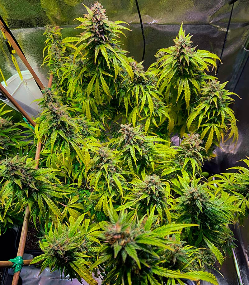 Соцветия на растениях вырастают тяжелыми, массивными и в большом количестве, поэтому кусты имеют крепкую разветвленную структуру. Вот почему их лучше растить на улице, не ограничивая в свободном пространстве. При индорном способе культивации следует избегать слишком густой посадки, а горшки брать объемом не менее 10-12 литров. Если плантация растет на свежем воздухе, то не поленитесь каждые 7-10 дней подкармливать растения питательной смесью, чтобы дать подопечным достаточно энергии для реализации природного потенциала производительности.